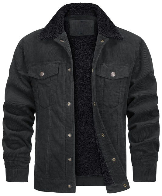 Corduroy Lapel Long Sleeve Plush Jacket Coat