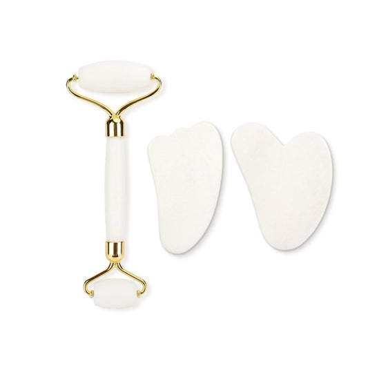 Genuine Jade Stone Massage Natural Quartz Scraper Jade Roller Gua Sha Set White Face Lifting Facial Massager Tool for Back Neck
