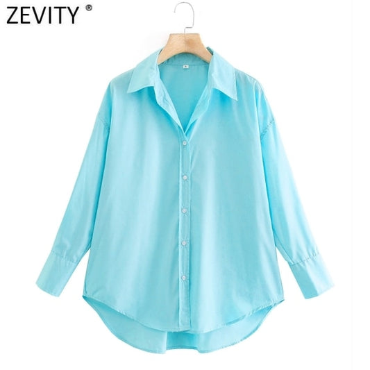 Zevity New Women Simply Candy COlor Single Breasted Poplin Shirts Office Lady Long Sleeve Blouse Roupas Chic Chemise Tops LS9114