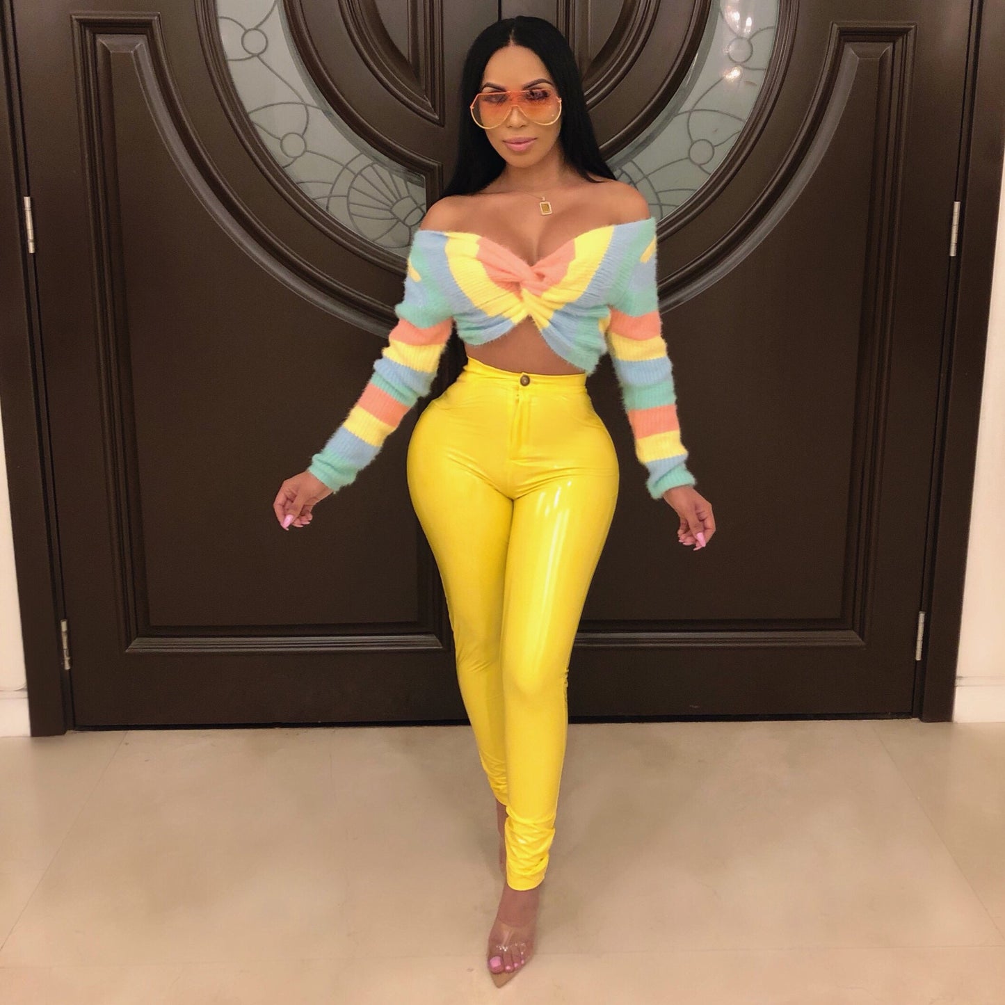 Women Latex Faux Pu Leather Pants Trousers Push Up High Waist Skinny Pants Pencil Fall Winter Solid Color Sexy Pants Female